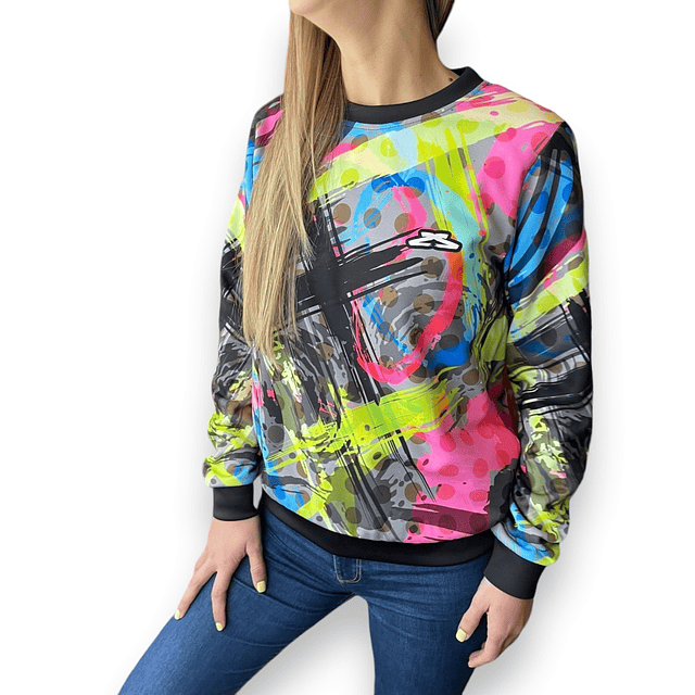 SWEATSHIRT FULL SUBLIMADO, FABRICADO EN TELA DOBLE NÚCLEO (EXTERIOR POLIESTER/INTERIOR ALGODÓN), DISPONEMOS DE DOS TIPOS DE TELAS SIMILARES (PARA BUZO), SU UTILIZACIÓN ESTÁ SUPEDITADA A DISPONIBILIDAD DE NUESTRO PROVEEDOR.